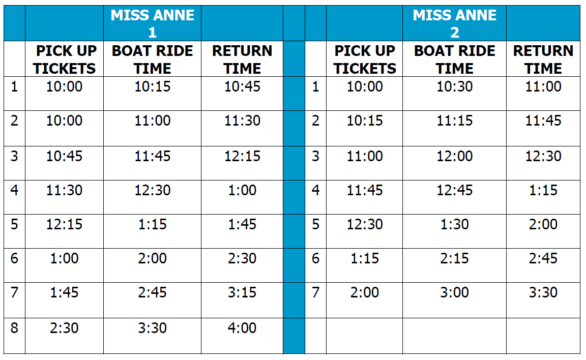 The River Days events and boat rides are free and do not require registration or tickets in advance. Boat ride tickets will be available one hour prior to each scheduled boat ride time. Boat ride times for the July 26 event at Quiet Waters Park are posted below. There will be a table manned by our staff at the beginning of the trail to the docks at Quiet Waters Park. For safety reasons Watermark Charters requires all passengers including babies and children to have a ticket.