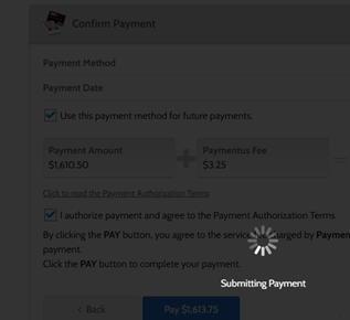 Click the "Pay" button containing the authorized payment amount to submit your payment.