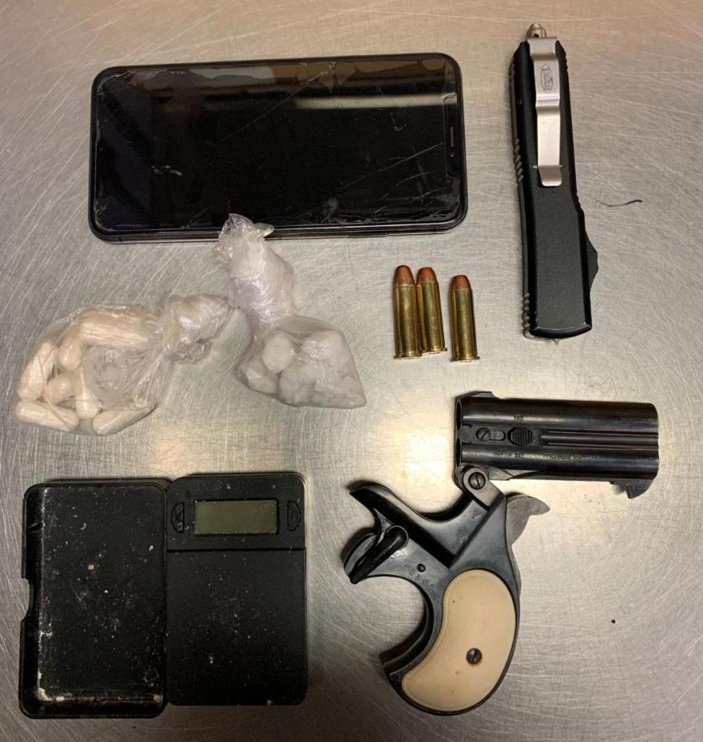On August 23, 2023, at approximately 1:40 a.m., an officer conducted a traffic stop of a gray Toyota on Church Street near Patrick Henry Drive in Brooklyn Park. While speaking with the driver, the officer observed a .38 caliber handgun partially concealed near the steering wheel. Further investigation resulted in the seizure of approximately 10 grams of suspected crack cocaine, eight capsules containing suspected heroin/fentanyl, and a digital scale. The driver, who is prohibited from possessing firearms, was arrested and charged.