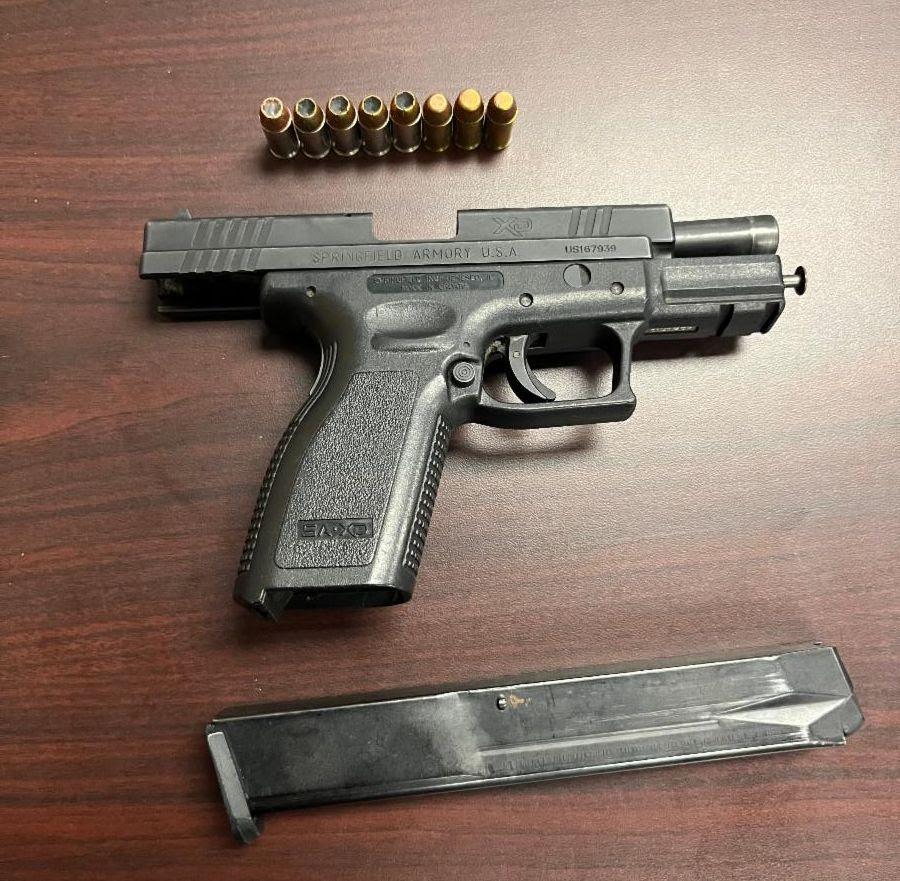 On August 27, 2024, at approximately 9:40 p.m., an officer observed a vehicle in Provinces Park, closed to the public after dusk. The officer attempted to stop the vehicle, which fled. The officer located the vehicle a short time later in the 1100 block of Clark Road. Upon approaching the vehicle, the officer observed a handgun in the passenger compartment. The officer seized the gun, a Springfield SC40 handgun with an extended magazine loaded with eight rounds of .40 caliber ammunition. The driver was arrested and charged.