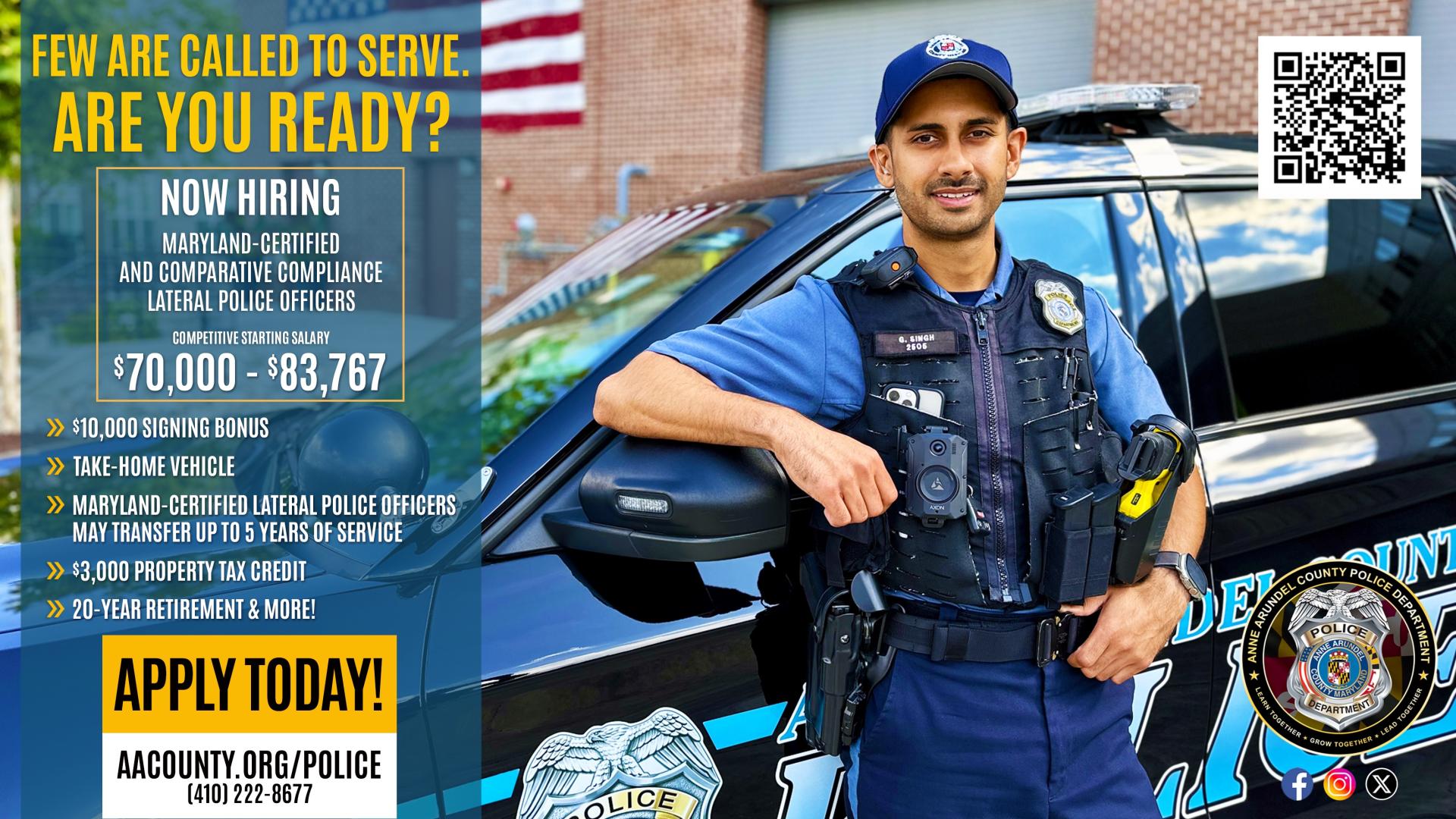 Text "JOINAAPD" to 38276 or scan our QR code to get updates about recruitment opportunities for Police Officer and Lateral Police Officer.